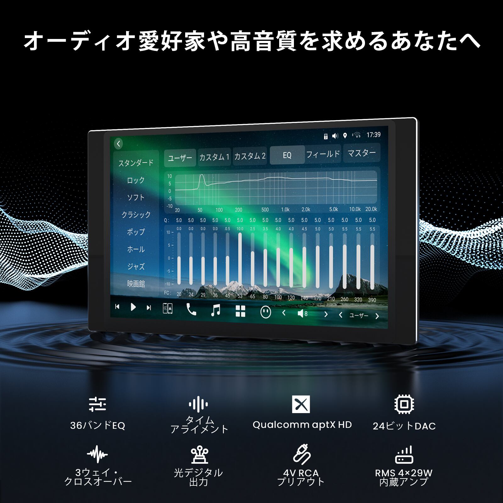 3. 先進のオーディオDSP:車内を上質なリスニング空間に — まるでプロのサウンドエンジニアがチューニングしたかのような、きめ細やかな音響設定が可能です。36バンドのグラフィックイコライザーやタイムアライメント、3-wayクロスオーバーといった本格的な機能を搭載し、あなたの好みに合わせた理想のサウンドを追求できます。高音質な24-bit DACによる原音に忠実な再生はもちろん、光デジタル(SPDIF)出力も備え、外部アンプとの接続による本格的なシステムアップも可能です。