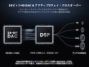 内蔵プリアンプおよびEQタイムアライメント機能により、車内環境に合わせた精密な音場調整を可能に。