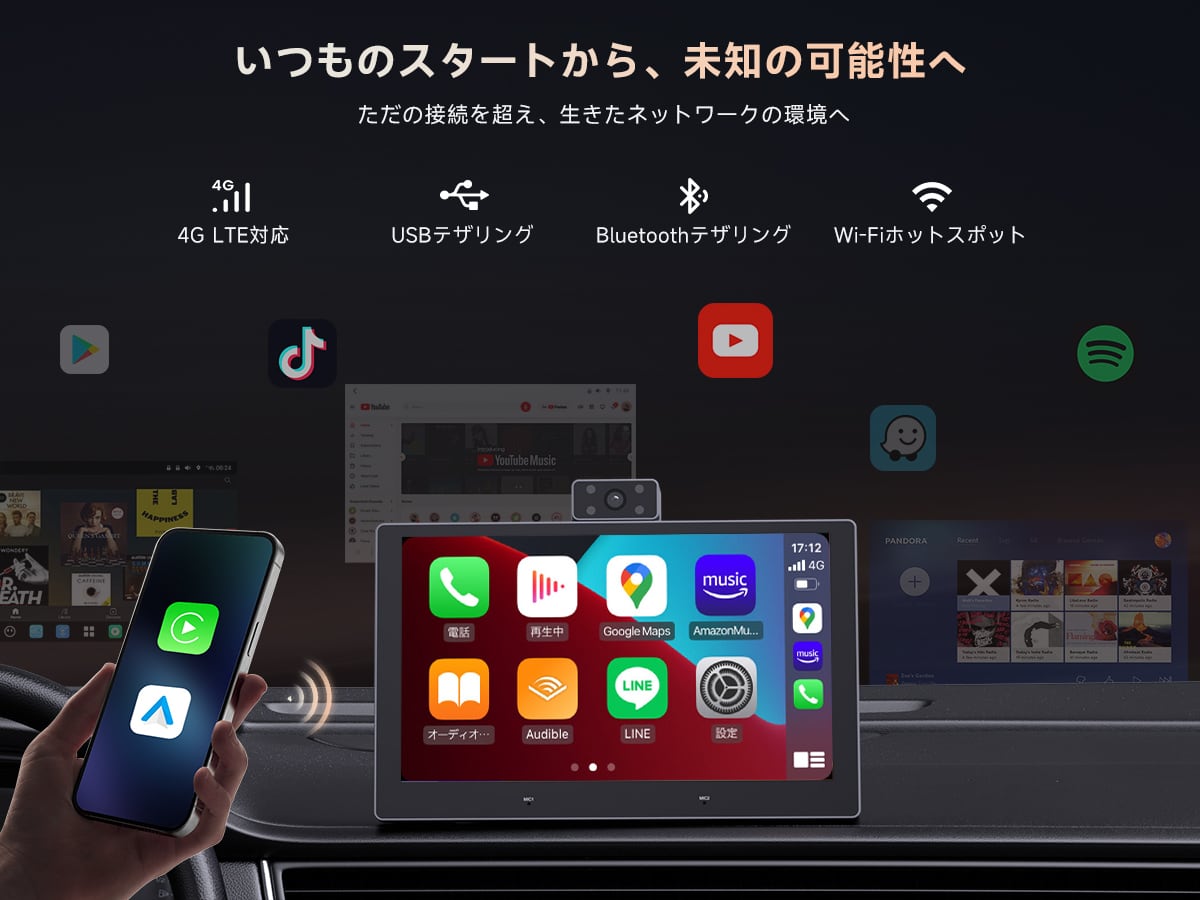常時オンラインのワイヤレスCarPlay / Android Auto LTE・USB・BluetoothテザリングでワイヤレスCarPlay/Android Auto使用中も常にネット接続。最新地図更新、オンライン音楽ストリーミング、TrackHUでの走行記録・リアルタイム位置共有もスムーズに行えます。