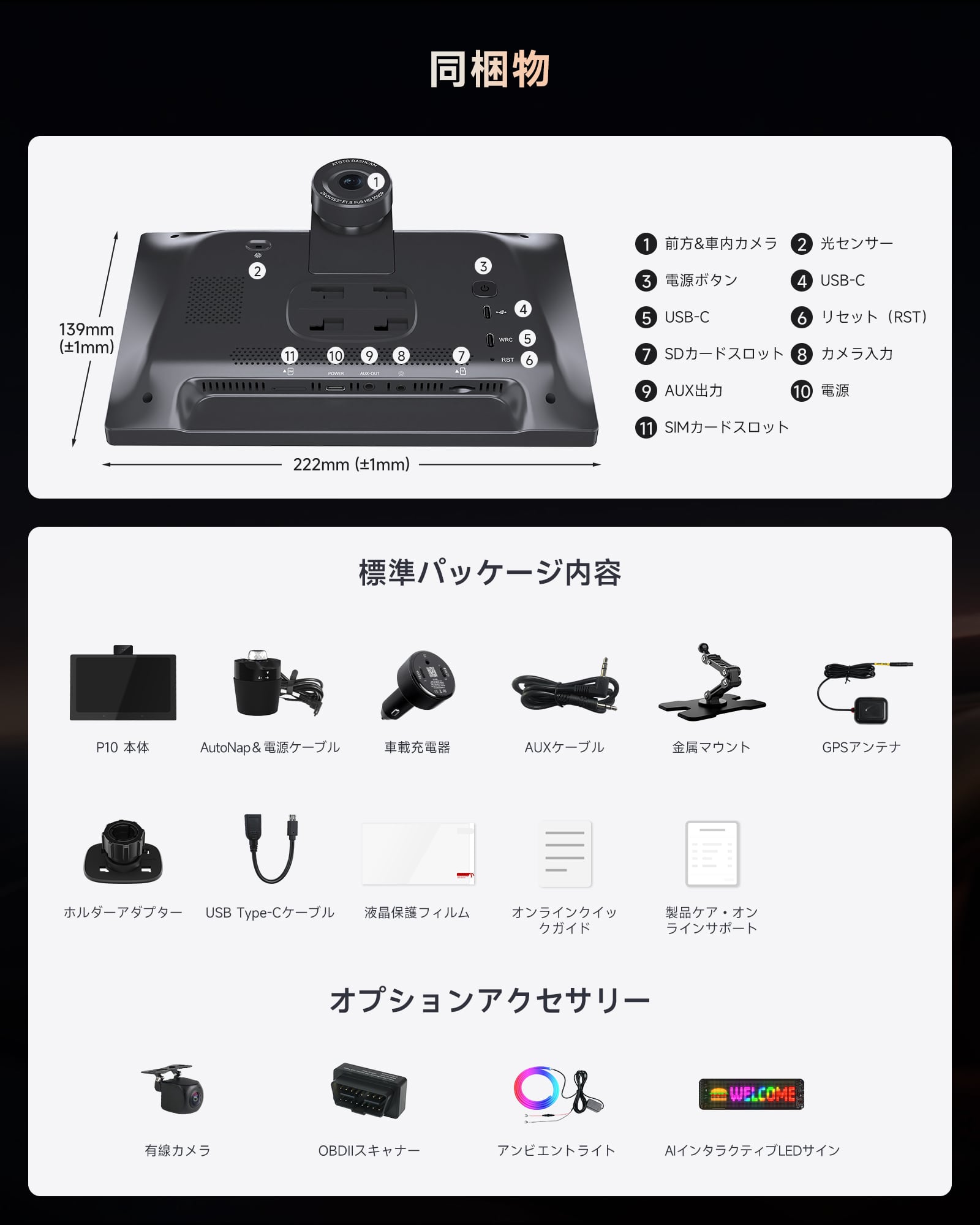 ATOTO P10で、毎日のドライブをよりスマートに、安全に、楽しく。 先進AI・高画質録画・常時接続・カスタムUIをすべて搭載した、次世代の車載エンターテイメント&セキュリティデバイスです。