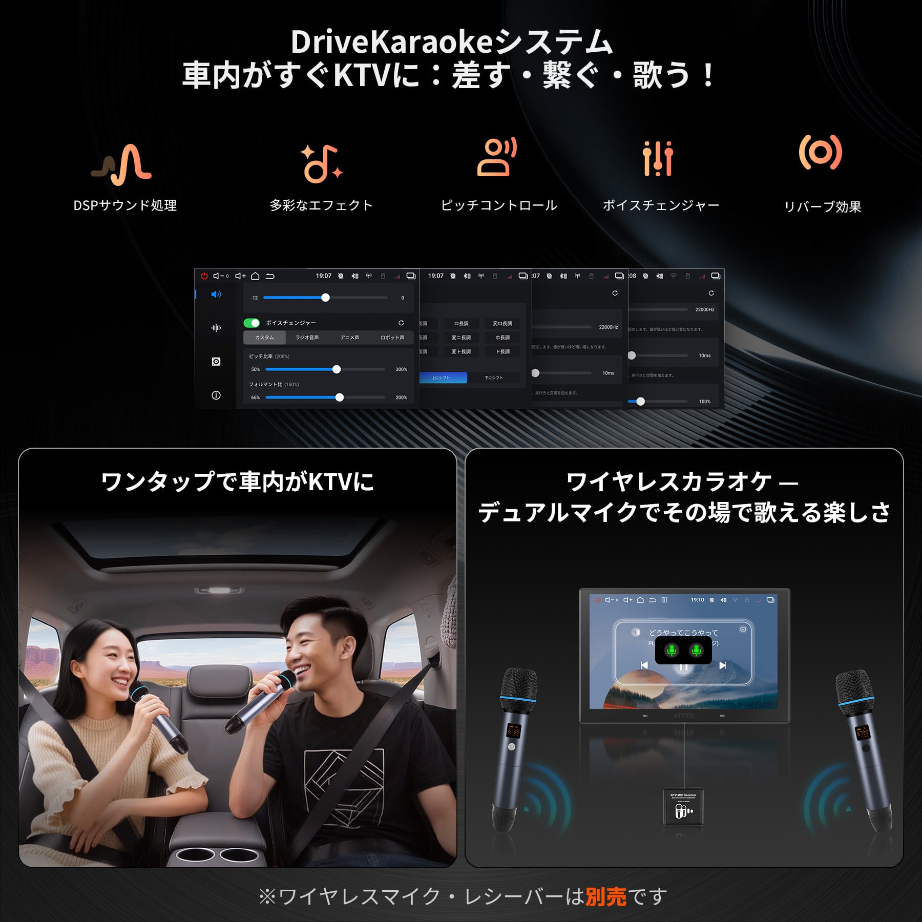 1. モバイルカーカラオケ(DriveKaraoke):リードボーカル除去アルゴリズムでボーカルを消去し、DSPによるスタジオ級エフェクトをリアルタイムで再生。アプリやケーブル不要で、どこでも歌えるカラオケ体験。街中でもキャンプでも楽しめます。